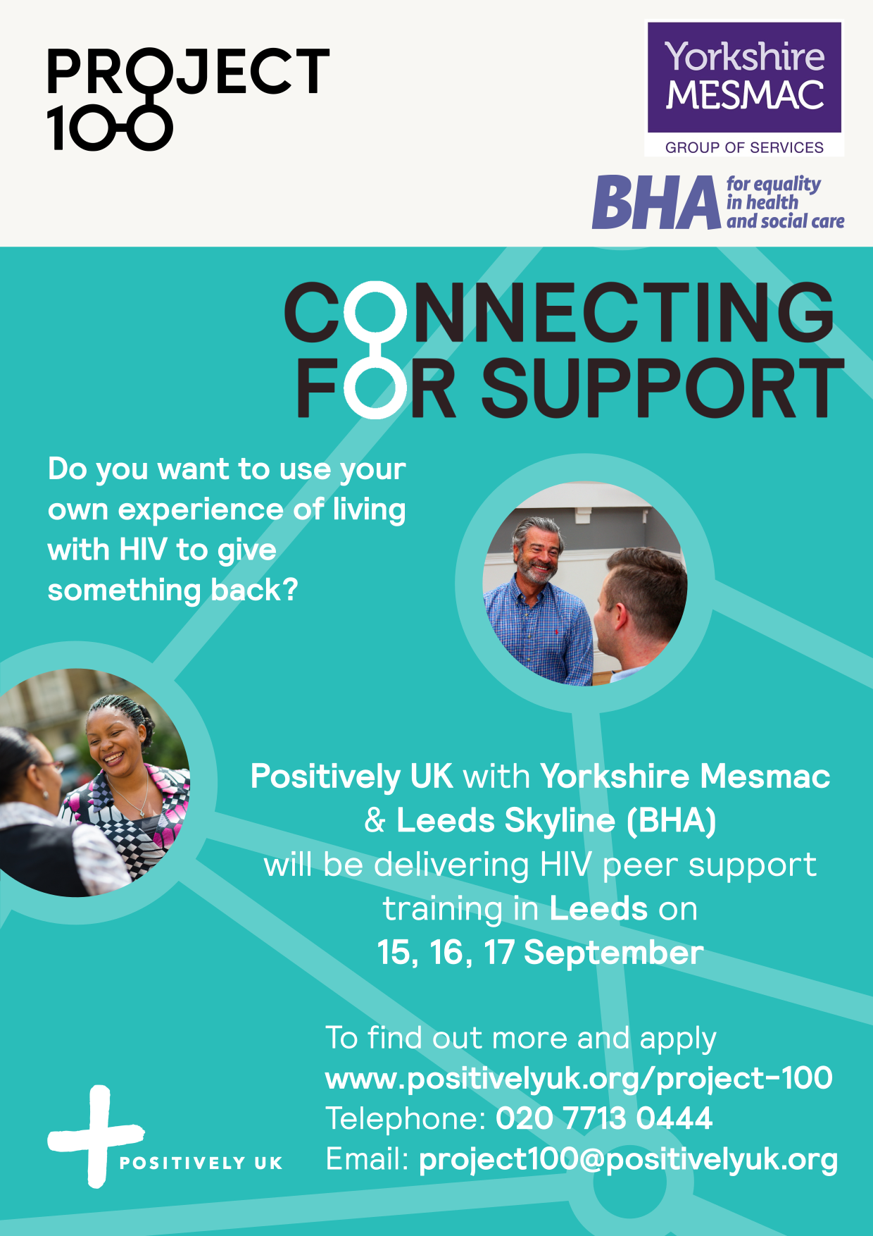 Project 100 is an exciting and ambitious programme that aims to provide all people living with HIV access to peer support wherever they live in the UK. Yorkshire MESMAC are supporting Project 100 across West, North and East Yorkshire.